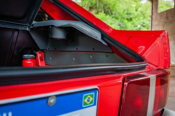 Cabe destaque ainda as plaquetas junto ao cofre do motor. Uma delas com a identificação do modelo, característica dos Escort, outra com informação da Autolatina, formada a partir da união de Ford e VW na época.